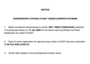 IAF Agniveer Vayu Intake 01/2027: ફોર્મ ભરવાની છેલ્લી તારીખ લંબાવવામાં આવી, જાણો સંપૂર્ણ વિગત February 2, 2026 by Alpesh