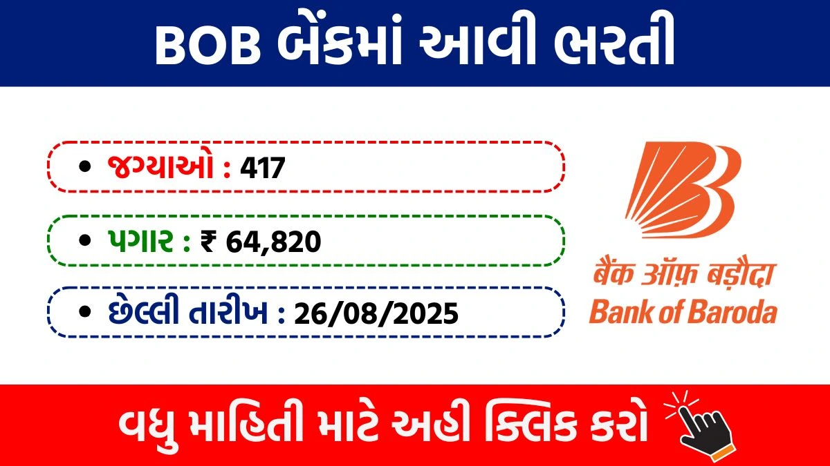 બેંક ઓફ બરોડામાં કોલેજ પાસ ઉમેદવારો માટે 417 જગ્યાઓની મોટી ભરતી, પગાર ₹ 64,820 સુધી