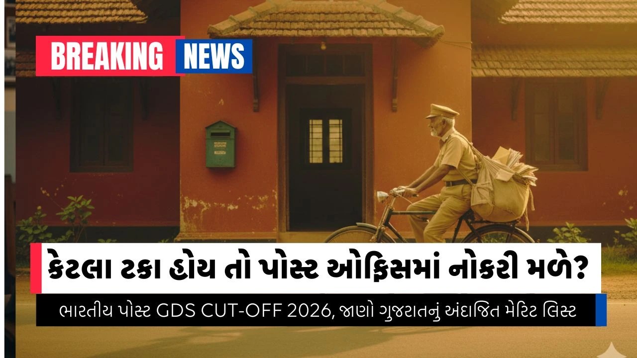Gujarat GDS Expected Cut-off 2026: ઇન્ડિયા પોસ્ટ દ્વારા ૨૮,૭૪૦ જગ્યાઓ પર ભરતીની પ્રક્રિયા શરૂ થઈ ગઈ છે. આ ભરતીમાં કોઈ પરીક્ષા ન હોવાથી ઉમેદવારોની પસંદગી માત્ર ૧૦મા ધોરણના ગુણના આધારે થાય છે. આથી, ઉમેદવારોમાં સૌથી મોટો પ્રશ્ન એ છે કે આ વર્ષે મેરિટ કેટલે અટકશે?