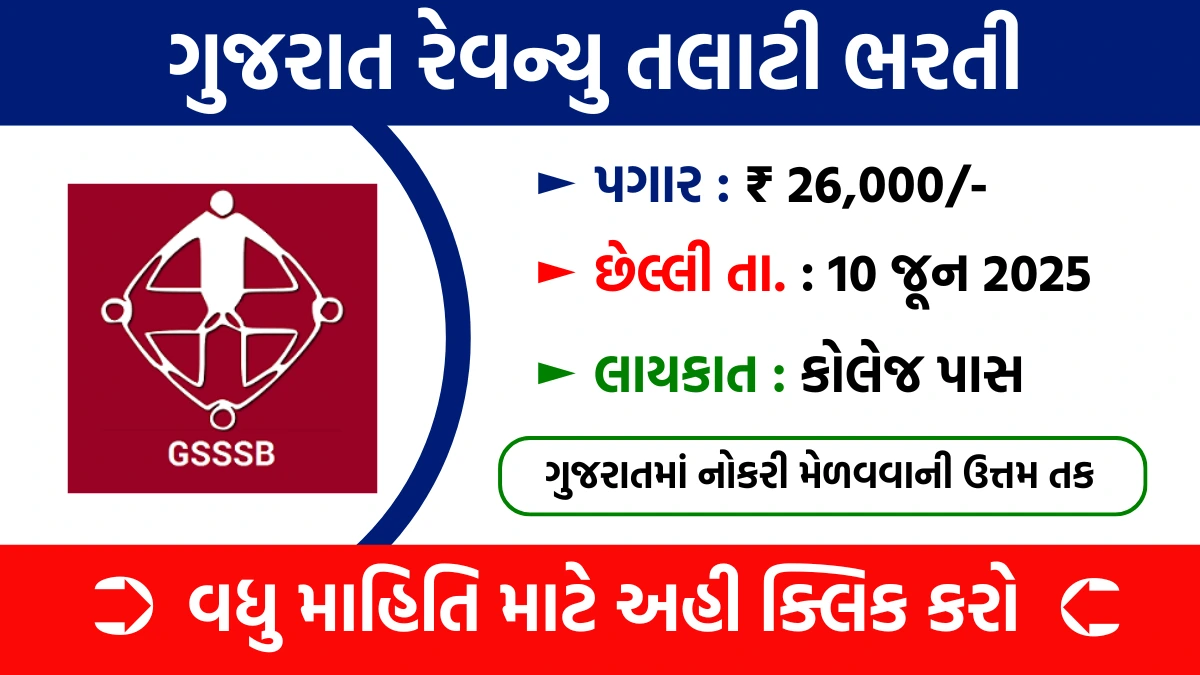 | પોસ્ટનું નામ | રેવન્યુ તલાટી (ક્લાસ-3) |