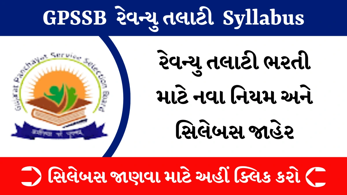 Gujarat Revenue Talati Syllabus 2025 : ગજુરાત ગૌણ સેવા પસદંગી મડંળ, ગાંધીનગર દ્વારા જાહેરાત ક્રમાકં : ૩૦૧/૨૦૨૫૨૬, દ્વારા મહસેલી વિભાગના નીયત્રંણ હઠેળની કલેકટર કચેરી હસ્તકની “મહસેલી તલાટી”, વગગ-૩ સંવર્ગની