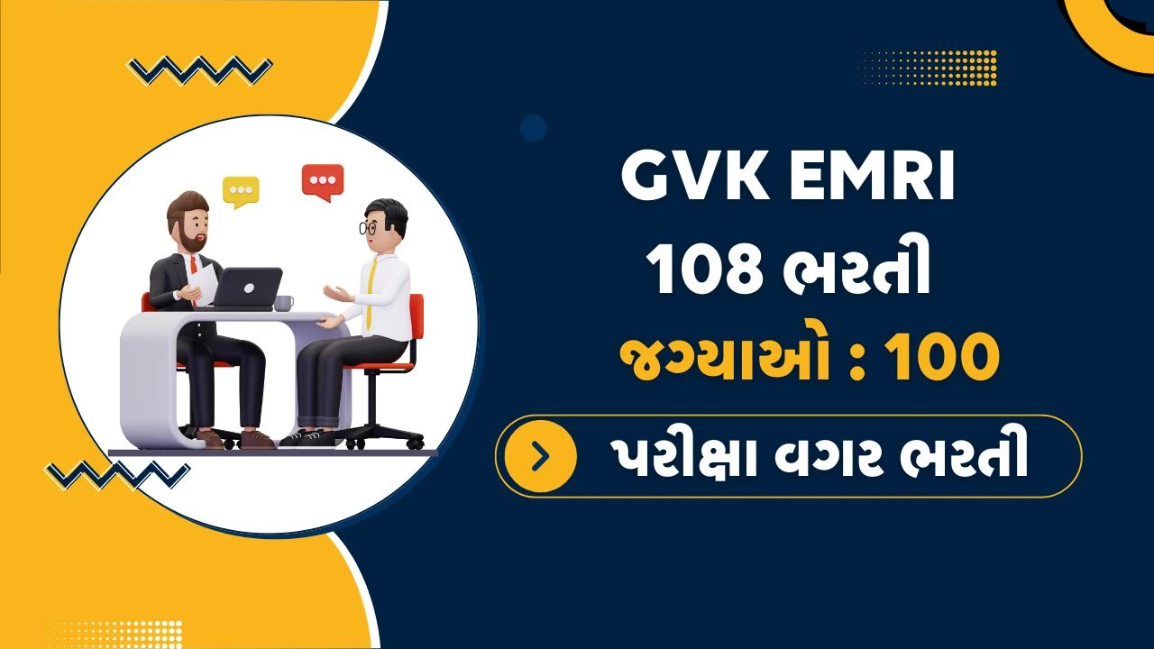 GVK EMRI 108 Recruitment 2025 : સરકારી નોકરીની શોધમાં છો? તો તમારા માટે આવી ગઈ છે એક નવી ભરતી. GVK (EMRI) ઇમરજન્સી ૧૦૮ દ્વારા કોલ સેન્ટર એક્ઝિક્યુટિવની પોસ્ટ માટે ૧૦૦ જગ્યાઓ પર ભરતી જાહેર કરવામાં આવી છે. જે ઉમેદવારોએ ગ્રેજ્યુએશન પૂર્ણ કરેલું છે, તેમના માટે આ એક સુવર્ણ તક છે.
