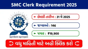 SMC Clerk Requirement 2025 : કોલેજ પાસ ઉમેદવારો માટે આવી ક્લાર્ક ની ભરતી, પગાર 19000 થી શરુ May 26, 2025 by Alpesh