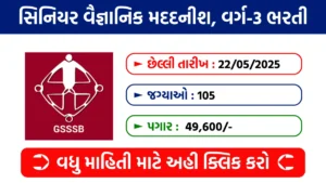 GSSSB Requirement 2025 : સિનિયર વૈજ્ઞાનિક મદદનીશ, વર્ગ-3 સંવર્ગની કુલ 105 જગ્યાઓ માટે ભરતી જાહેર, પગાર ₹49,600/- May 9, 2025 by Alpesh