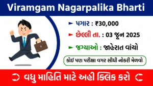 Viramgam Nagarpalika Recruitment 2025 : વિરમગામ નગરપાલિકા દ્વારા આવી ભરતી, પગાર ₹ 30,000 સુધી May 20, 2025 by Alpesh