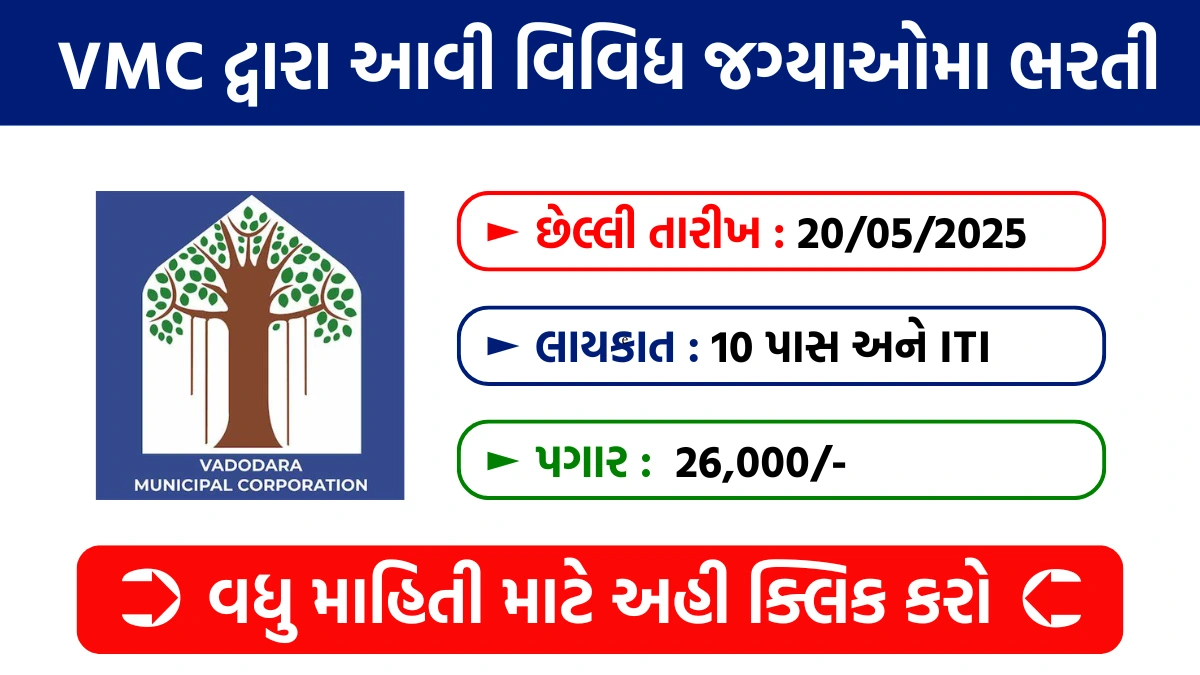 Vadodara Mahanagarpalika Recruitment 2025 : VMC દ્વારા 10 પાસ અને ITI ઉમેદવારો માટે આવી નવી ભરતી, ફોર્મ ભરો